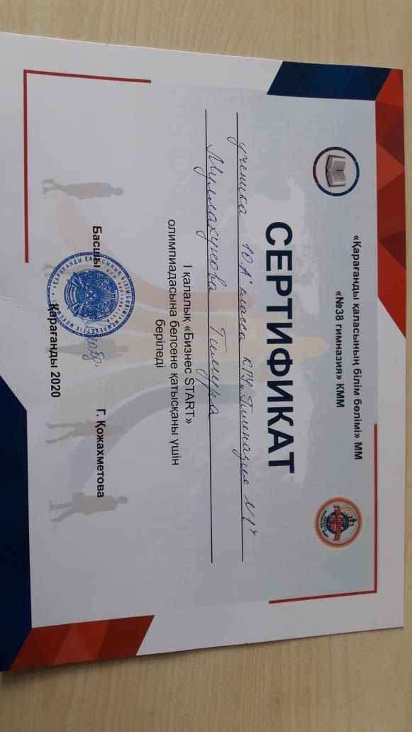 В рамках Недели финансовой грамотности, ученик 10 класса Муллахунов Тимур принял участие в городской олимпиаде "Бизнес Start".