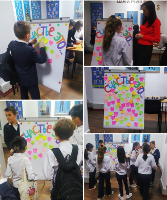 Психология апталығының басталуы. Позитивті көңіл-күй күні. "Бақыт - бұл..." постер.