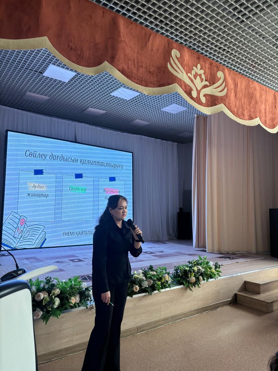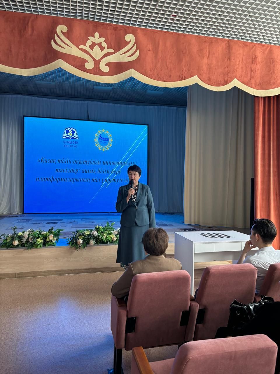 2026 жылдың 27 наурызында Қарағанды облысында білім беруді дамытудың оқу-әдістемелік орталығы ұйымдастыруымен Шәкәрім атындағы гимназиясында "Қазақ тілін оқытудағы инновациялық тәсілдер: ашық білім беру платформаларының тіл үйретуге әсері" атты облыстық