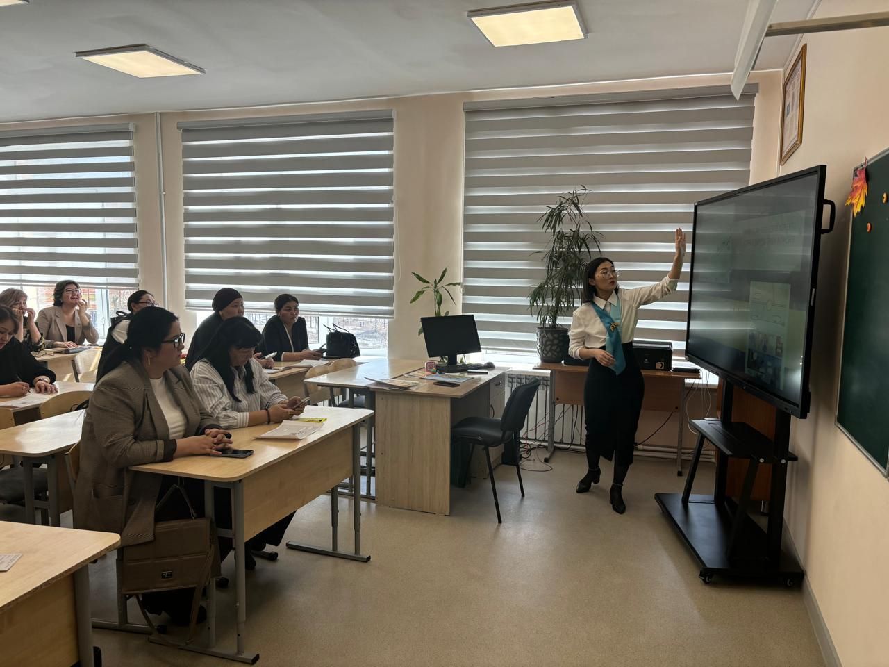 2026 жылдың 27 наурызында Қарағанды облысында білім беруді дамытудың оқу-әдістемелік орталығы ұйымдастыруымен Шәкәрім атындағы гимназиясында "Қазақ тілін оқытудағы инновациялық тәсілдер: ашық б…