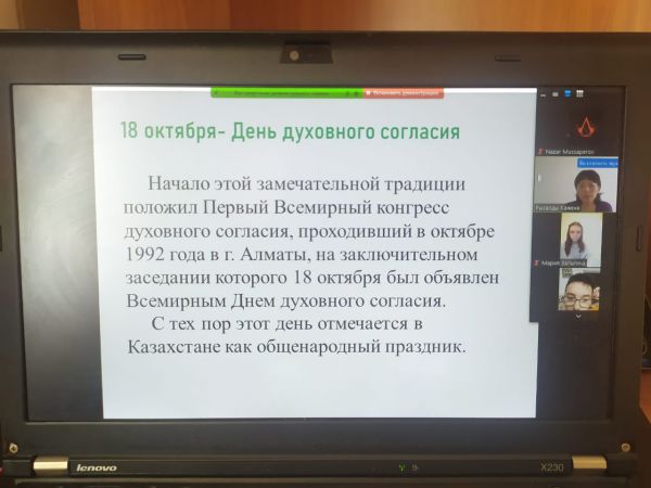 "ДУХОВНОЕ СОГЛАСИЕ - ЗАЛОГ СТАБИЛЬНОСТИ НАШЕГО ОБЩЕСТВА" Такова тема онлайн классного часа, проведенного в 93 гимназии г. Караганды для учащихся 6Г класса и их родителей. Классный руководитель 6Г клас…