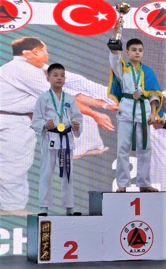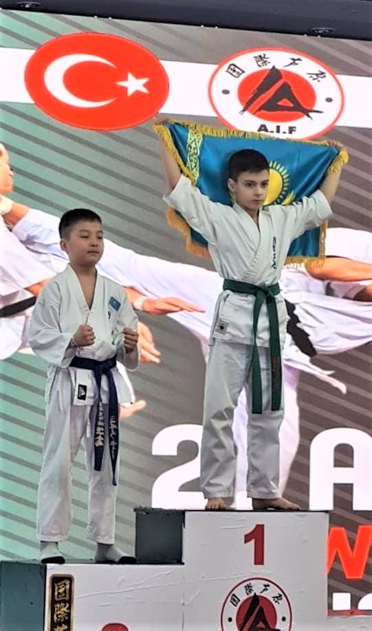 Чемпионат Мира по Ашихара Каратэ АИКО. Оганисян Оганес, ученик 2 Д класса нашей гимназии занял 1 место, стал чемпионом мира и достойно поднял в Турции флаг Казахстана