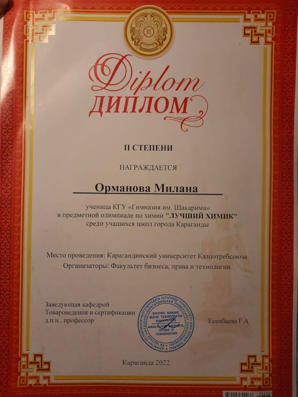 Поздравляем призера Орманову Милану и руководителя Тимошкину И. Н.! Пусть ваша совместная химическая практика принесет много успехов и открытий!