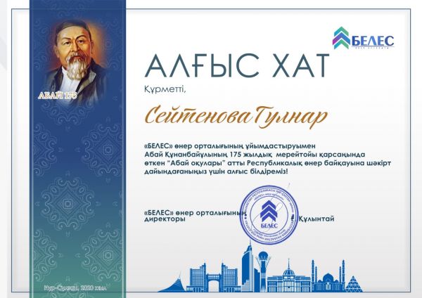 АРУЖАН, ҚҰТТЫ БОЛСЫН! Қашықтықтан оқу - оқушыларымыздың интеллектуалдық олимпиадалар мен байқауларға қатысып, биік жетістіктерге жетуге тамаша мотивация. Осындай Республикалық  "Қызықты…