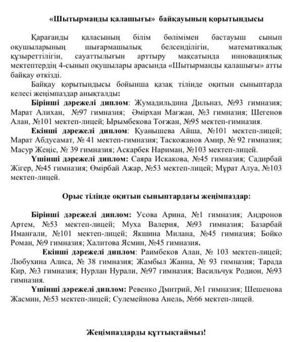 Интеллектуалдық байқауда біздің оқушылар тағы да топ жарды. Құтты болсын!