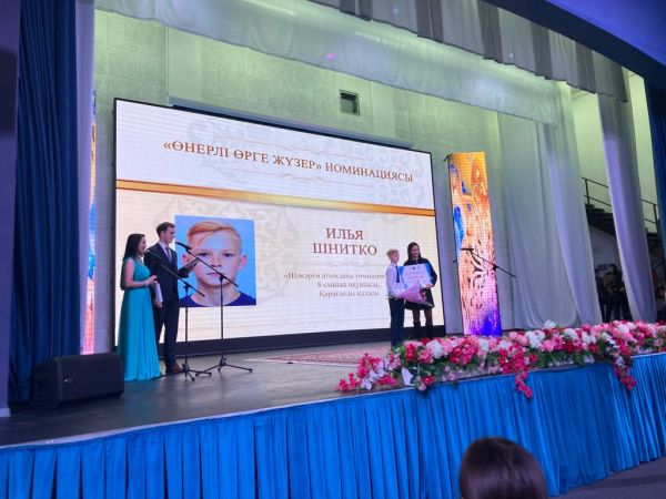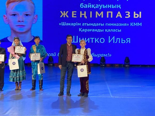 Республикалық “Мың бала” мәдени-ағартушылық жобасының республикалық кезеңінің жеңімпазы “Шәкәрім атындағы гимназия”КММ 7-сынып оқушысы Шнитко Илья.