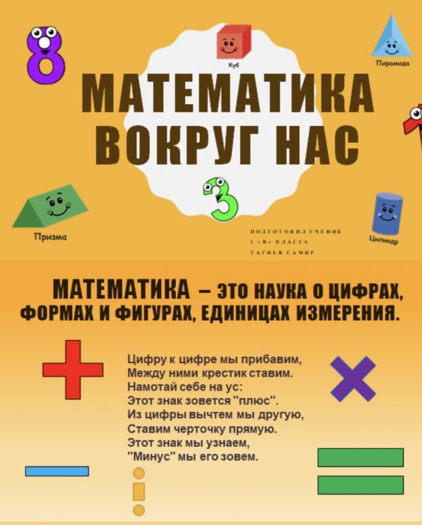 Неделя Математической грамотности "Математика вокруг нас". Работа учащегося 1 В класса Тагиева Самира. Классный руководитель МАРТЕМЬЯНОВА Е.Н. #математикавокругнас