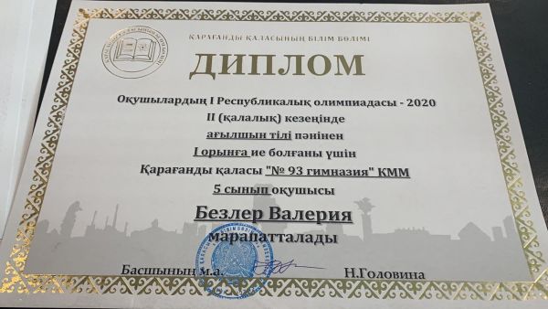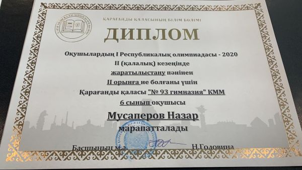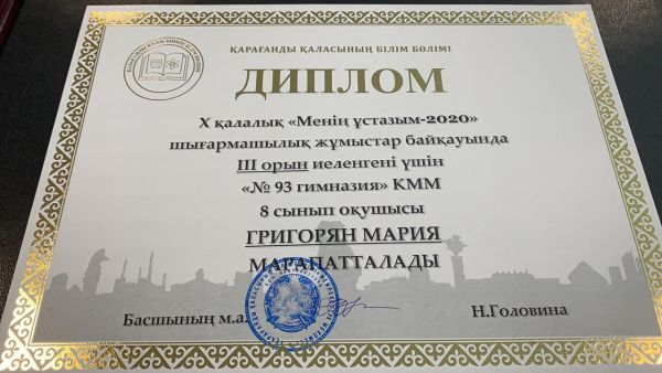 Поздравляем победителей X городского конкурса «Менің ұстазым-2020» Бексұлтан Қайсар и Григорян Марию. Учителя Сулейменов Асылбек Муратович, Козлова Анна Геннадьевна.