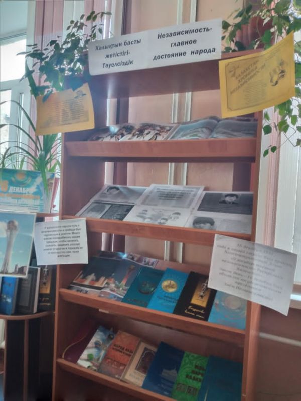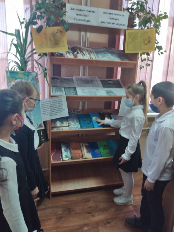 Гимназия кітапханасында «Тәуелсіздік-Мәңгілік елдің тұғыры» тақырыбында кең көлемді кітап көрмесі ұйымдастырылды.       Кітапхана  залында  еліміздің тәуелсіздік алған сәтінен бастап бүгінге дейінгі ж…