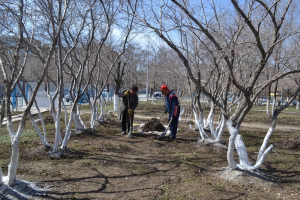 11 апреля технический персонал принял участие в субботнике. Была организована уборка территории, побелка деревьев.