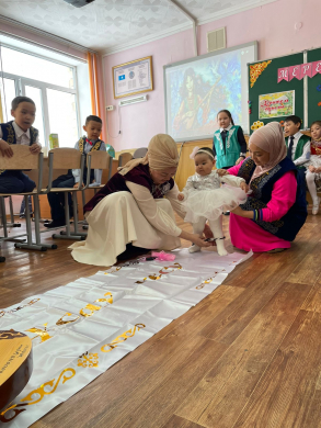 классный руководитель 1А класса гимназии имени Шакарима г. Караганды СЕЙТЕНОВА ГУЛЬНАР ЖУМАГАЛИЕВНА канун Великого праздника Наурыз в праздничной атмосфере провела праздничный ритуал " Тұсау кесу".
