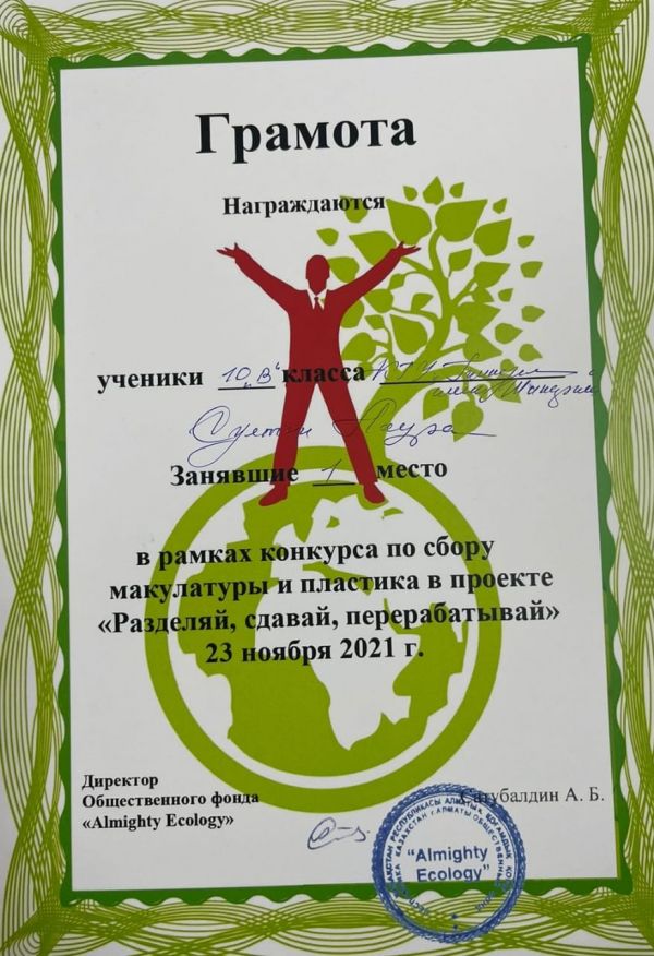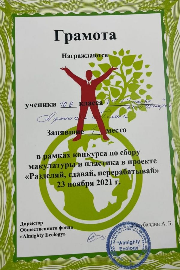 Экологиялық мəдениетті жас кезінен қалыптастыру мақсатында құрылған Қарағанды қаласы Шəкəрім атындағы гимназияның "ЖАС ЭКОЛОГ" үйірмесі /жетекшісі КАЖЕНА РЫСАЛДЫ ҚУА…