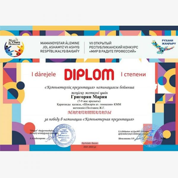30 октября 2021 года учащиеся гимназии приняли активное участие в VIIОткрытом Республиканском конкурсе «Мир в радуге профессий» в номина…