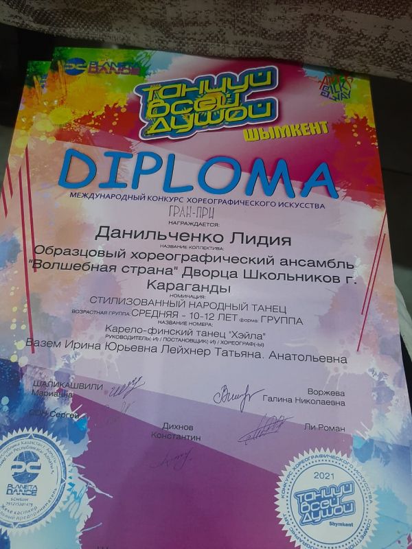 2021 жылдың 31-жұлдызында шырайлы Шымкент қаласында өткен халықаралық байқауының хореографиялық өнерінің "Волшебная страна" атты үлгілі-хореографиялық ансамблінің құрамындағы "ұлттық…