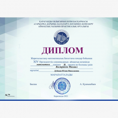 30 октября 2021 года состоялась Президентская олимпиада для выпускников общеобразовательных организаций образования по предметам естественно-математического цикла.В данной олимпиаде участвовали Вост…