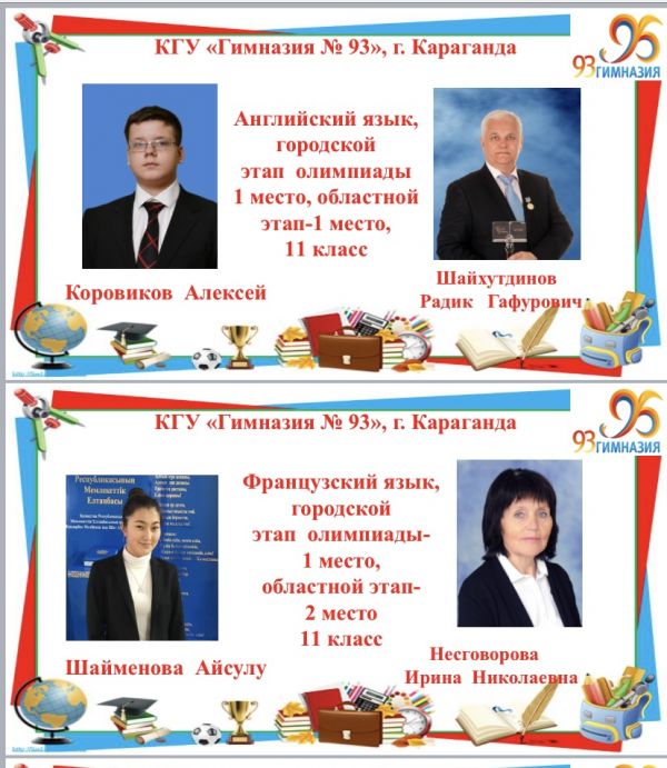 Поздравляем победителей II (городского) и III (областного) этапов Республиканской олимпиады школьников 9-11 классов по 16 общеобразовательным предметам 2020-2021 учебного года