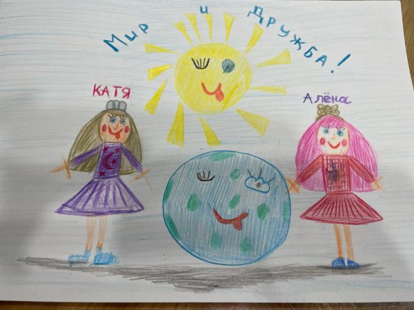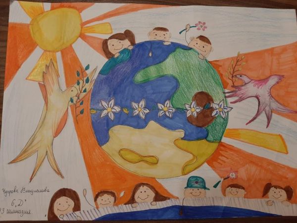 В рамках декады по самопознанию учащиеся 1Д класса представили свои творческие работы на тему «Мир и дружба».