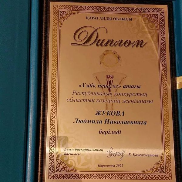 Жақында Людмила Николаевнаға Республикалық байқаудың облыстық кезеңінде «Үздік педагог» атағы беріліп