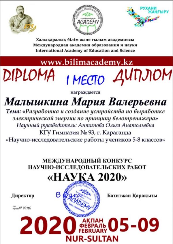 Поздравляем учащегося 10 "Б" класса Базилева Льва и научного руководителя проекта Полтавец Жанну Геннадьевну за победу в международном конкурсе научно- исследовательских работ "Наука 2020" и получени…