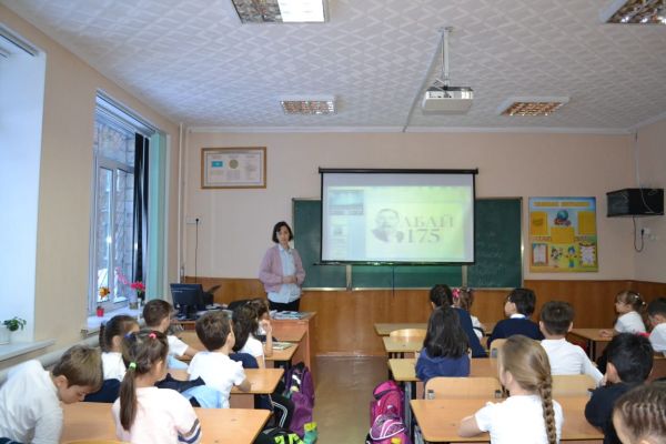 "АБАЙ ҮНІ, АБАЙ ТЫНЫСЫ - ЗАМАН ҮНІ, ЗАМАН ТЫНЫСЫ" М. Əуезов. Ұлысын ұлықтаған ұлт ретінде хəкім Абайдың 175-жылдығына орай Қарағанды қаласының, No 93 гимназиясында тақырыптық сынып саға…