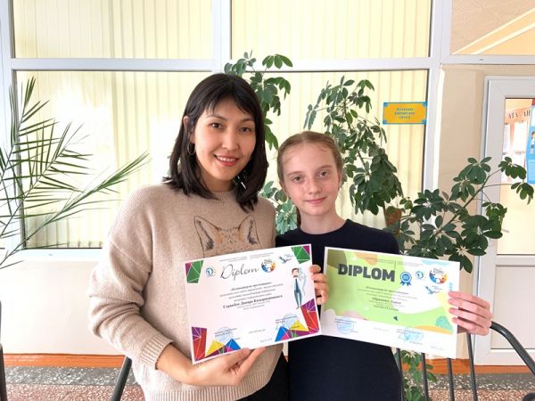 Поздравляем учителя информатики Серикбек Д.К. и ее воспитанницу Абрамову Дарью, ученицу 4 класса, за достижения в областном конкурсе компьютерных презентаций, организованном во Дворце детей и юношес…