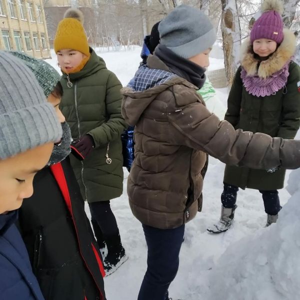 Ребята 7 «А» класса сделали снежную фигуру. Молодцы!