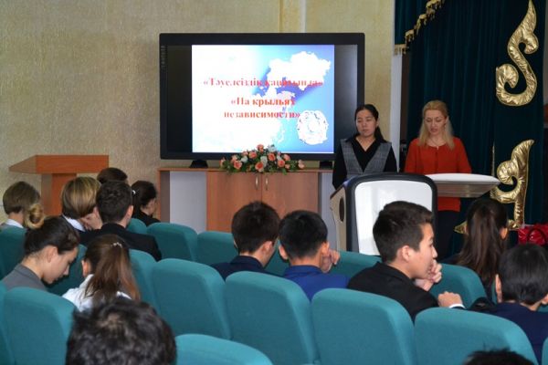 В рамках мероприятий, приуроченных Дню Независимости, в  КГУ «Гимназия №93» учителя кафедры русского языка и общественных дисциплин Маратова А.Е. и  Миндубаева О.А. провели инт…