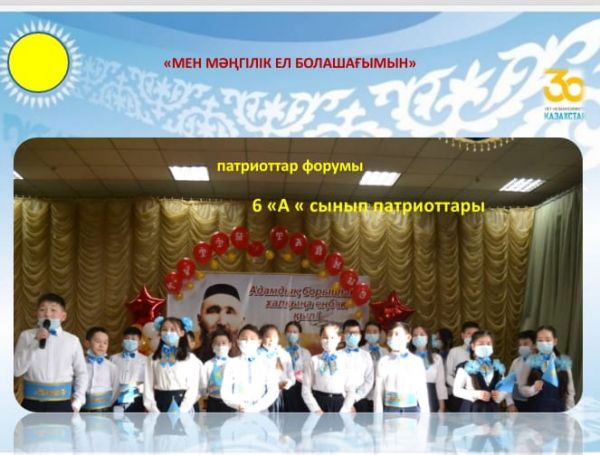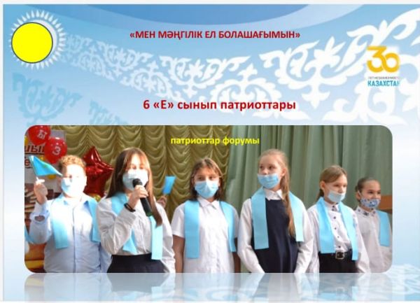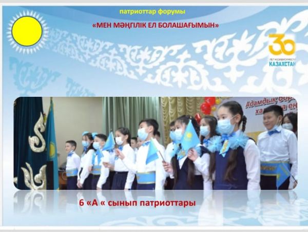 начальных и 5,7классах проведены классные часы, викторины "Казахстан - Родина моя", "Мой независимый, свободный Казахстан" посвящённый 30 летию Независимости Республики Казахстан.