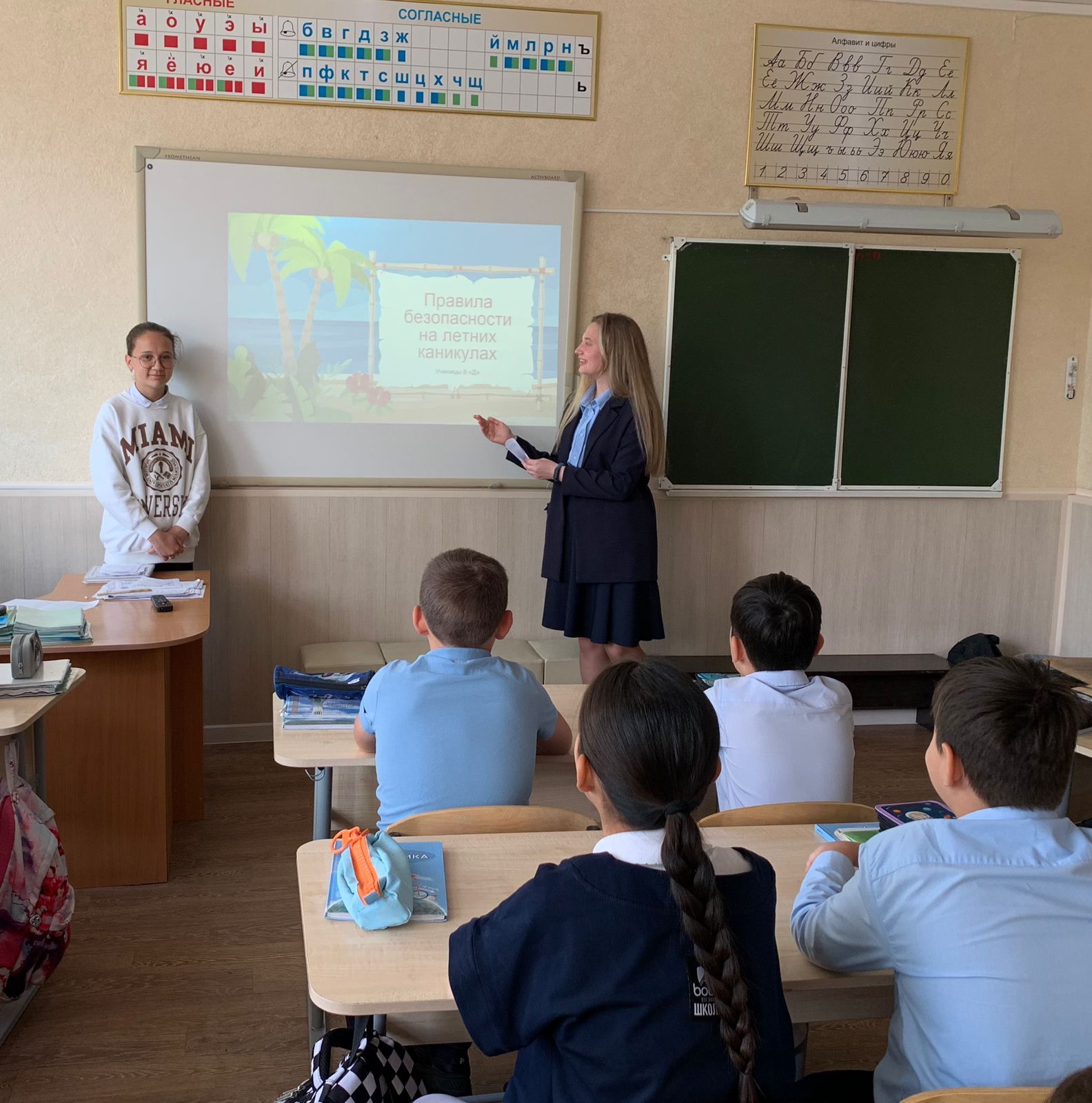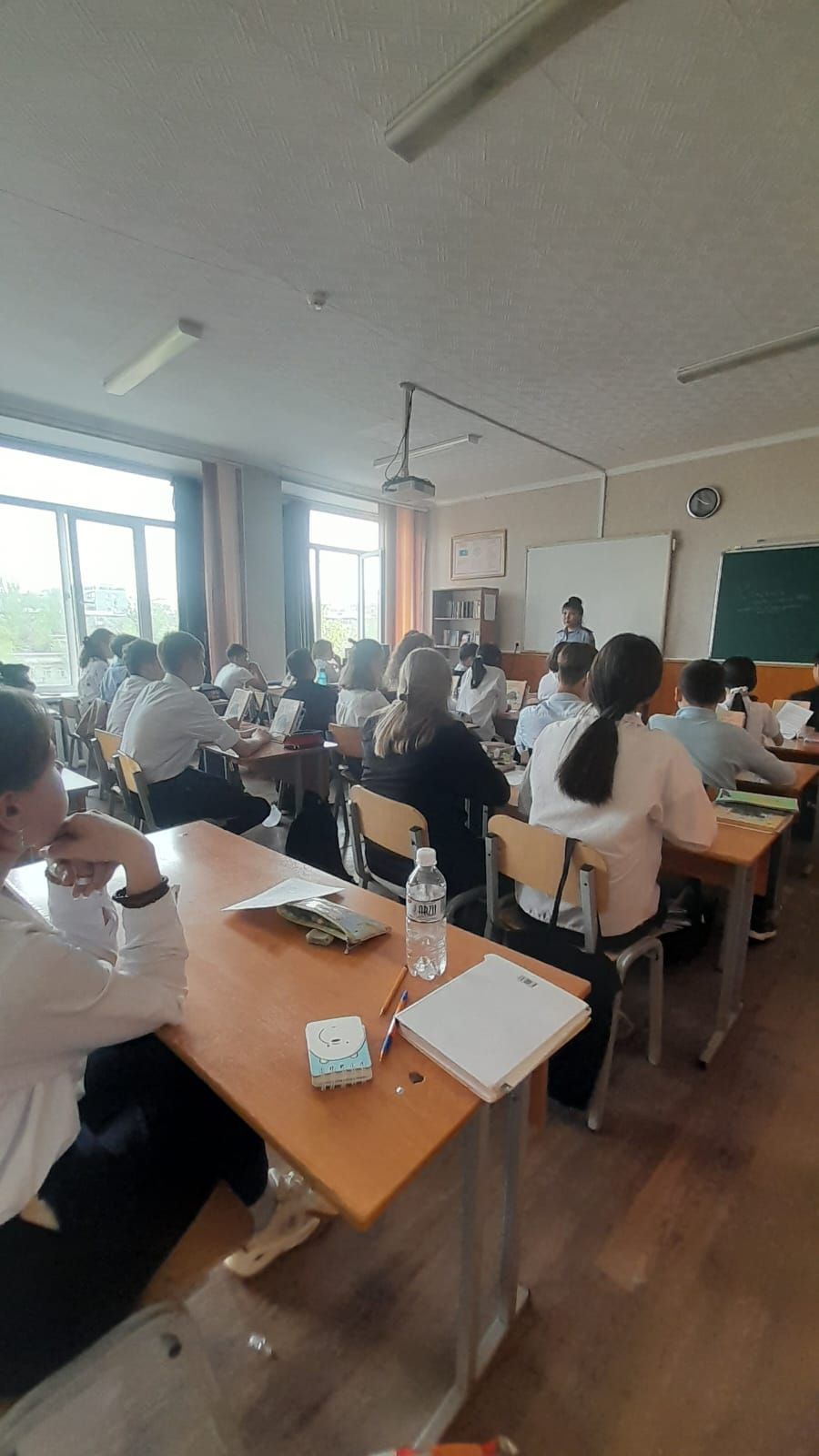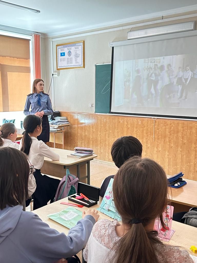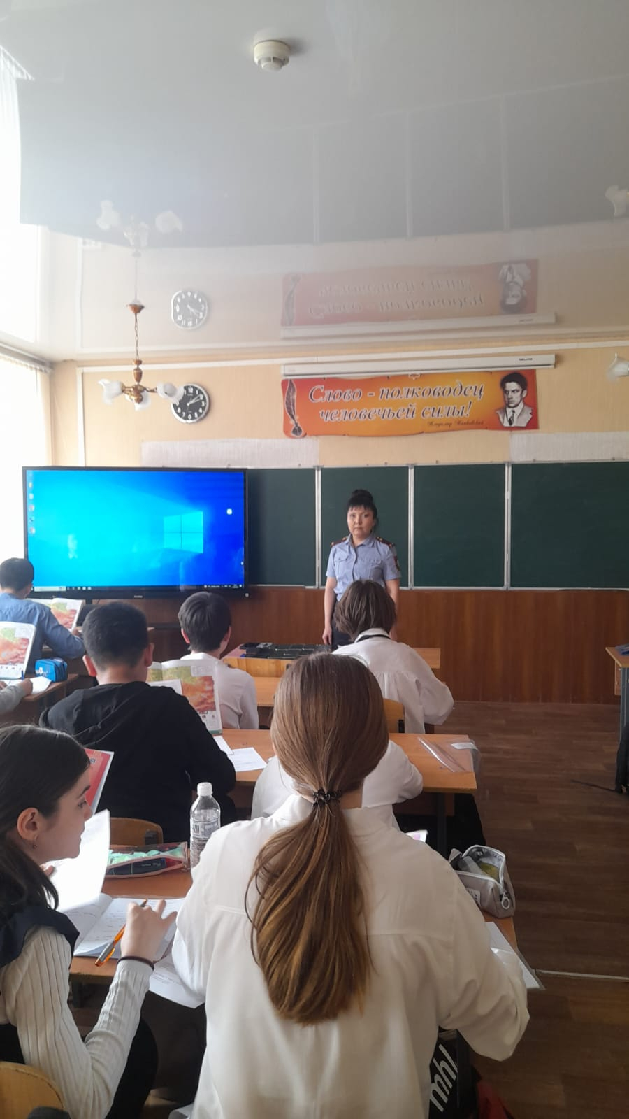 24.05.2023 Шәкәрім гимназиясында ювеналды полиция тобының учаскелік инспекторы полиция лейтенанты Виктория Эдуардовна Непогодьева