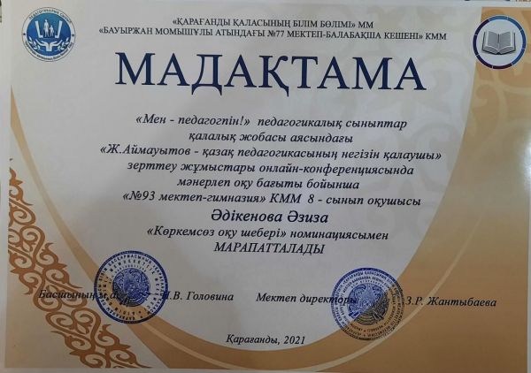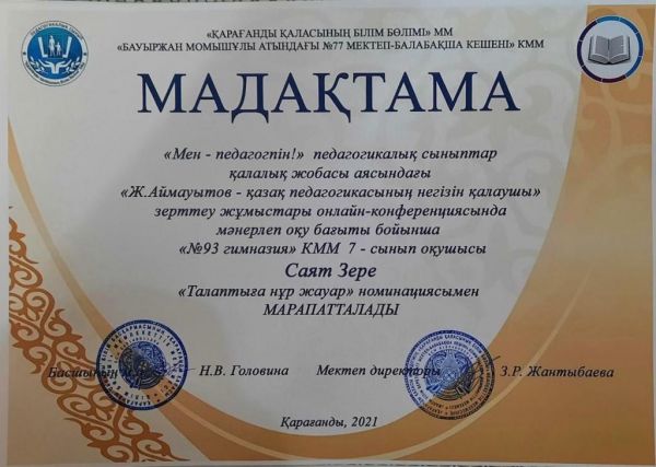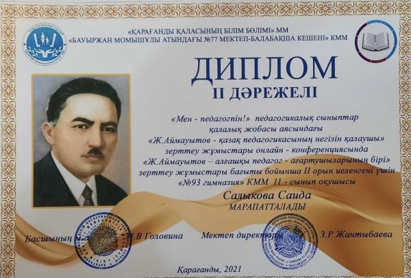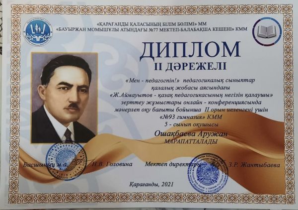 25 желтоқсан күні «Б.Момышұлы атындағы №77 мектеп-бөбекжай кешенінде» «Мен педагогпін!» педагогикалық сыныптар облыстық жобасы аясында ҚББ-нің ұйымдастыруымен «Ж.Аймауытов қазақ педагогикасының негі…