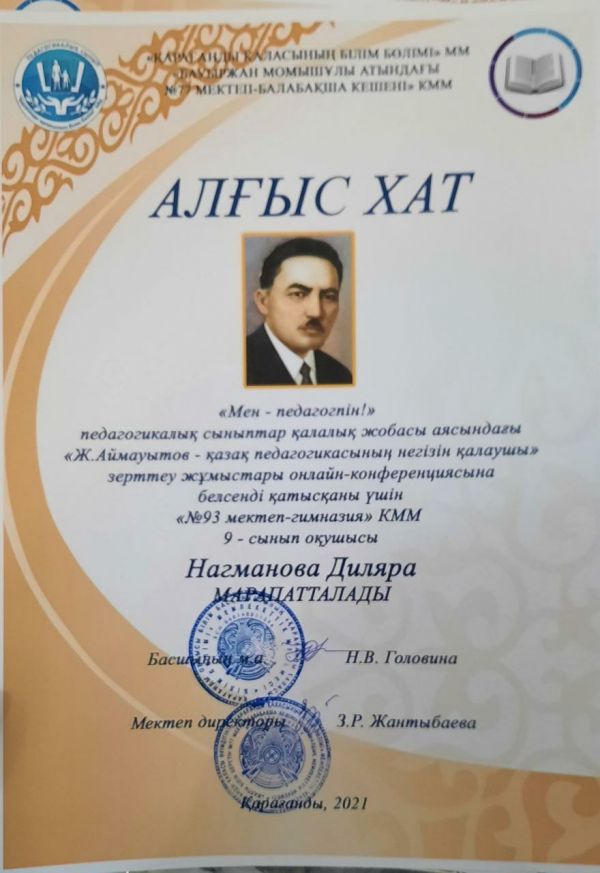 Сегодня, 27 января третий день недели математической грамотности. Для учащихся 10 классов проведена онлайн экскурсия в Карагандинский Университет им.Е.А. Букетова. Встречу провела магистр техниче…