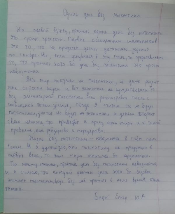 26.01 2021г. был проведён конкурс эссе. В конкурсе приняли участие учащиеся 10 А класса. Учитель математики Смагулова Ш.К. #математикаайналамызда