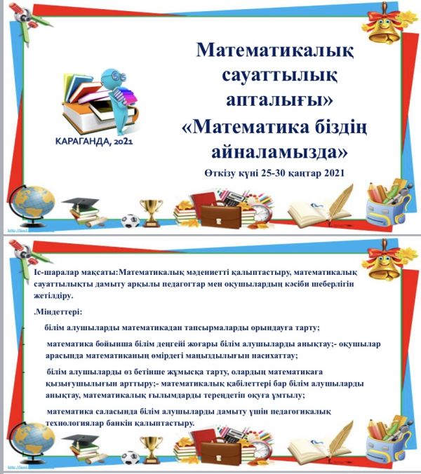 Математикалық сауаттылық апталығы «Математика біздің айналамызда»