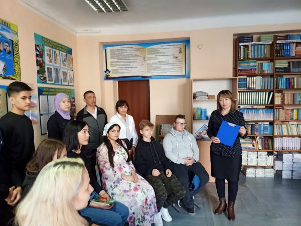 14 сәуір күні №100 кешкі мектепте «Бір ел-бір кітап» акциясы аясында қазақ тілі мен әдебиет пәнінің мұғалімі Б.А.Калипанова «Ахмет Байтұрсыновтың ғылыми мұрасы» а…