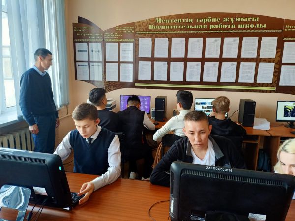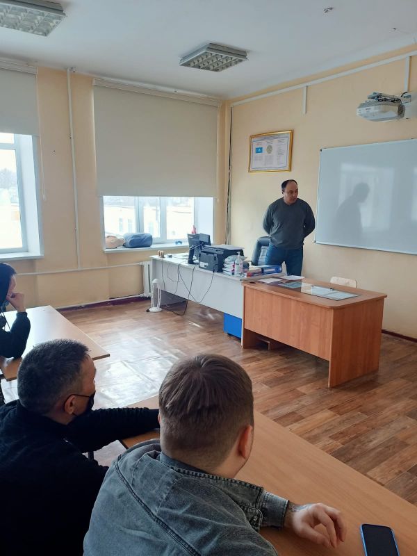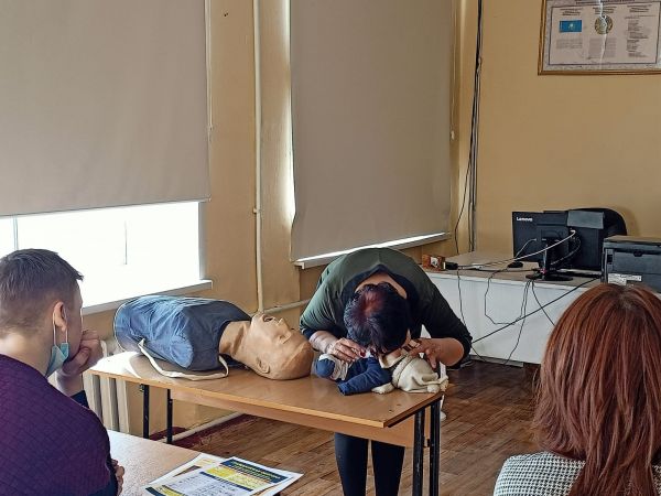 2022 жылдың 14 сәуірінде балалар үшін қауіпсіз жағдайларды қамтамасыз ету мақсатында "№ 100 кешкі мектеп" КММ-де 11 сынып оқушыларымен "суға батқан кезде алғашқы көмек көрсету"та…