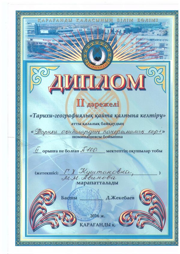 5 апреля 2017 года состоялся Городской конкурс "Историко - географическая реконструкция" на котором Макет "Карлаг" выполненный учеником 8 класса Дмитриевым Макси…