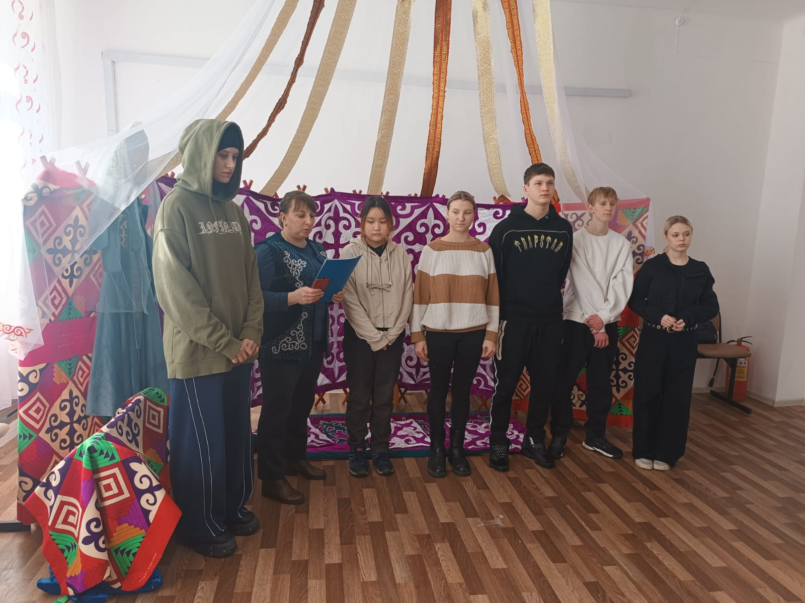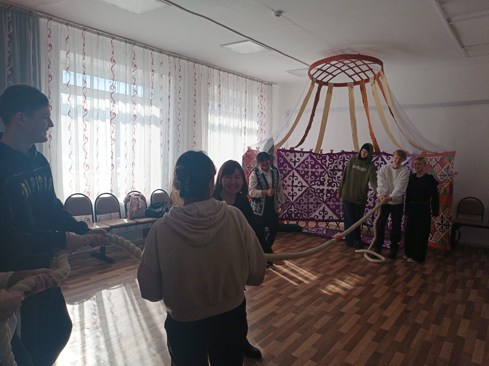 17 марта 2026, года в КГУ "ВШ № 100" был посвящен Шаңырақ күні. Педагоги и учащиеся школы рассказали о культуре и традициях казахского народа через игры и мини- постановки сцен.