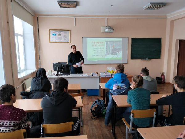 В КГУ " ВШ 100" прошли классные часы ,посвященные 34-ой годовщине вывода советских войск из Демократической Республики Афганистан