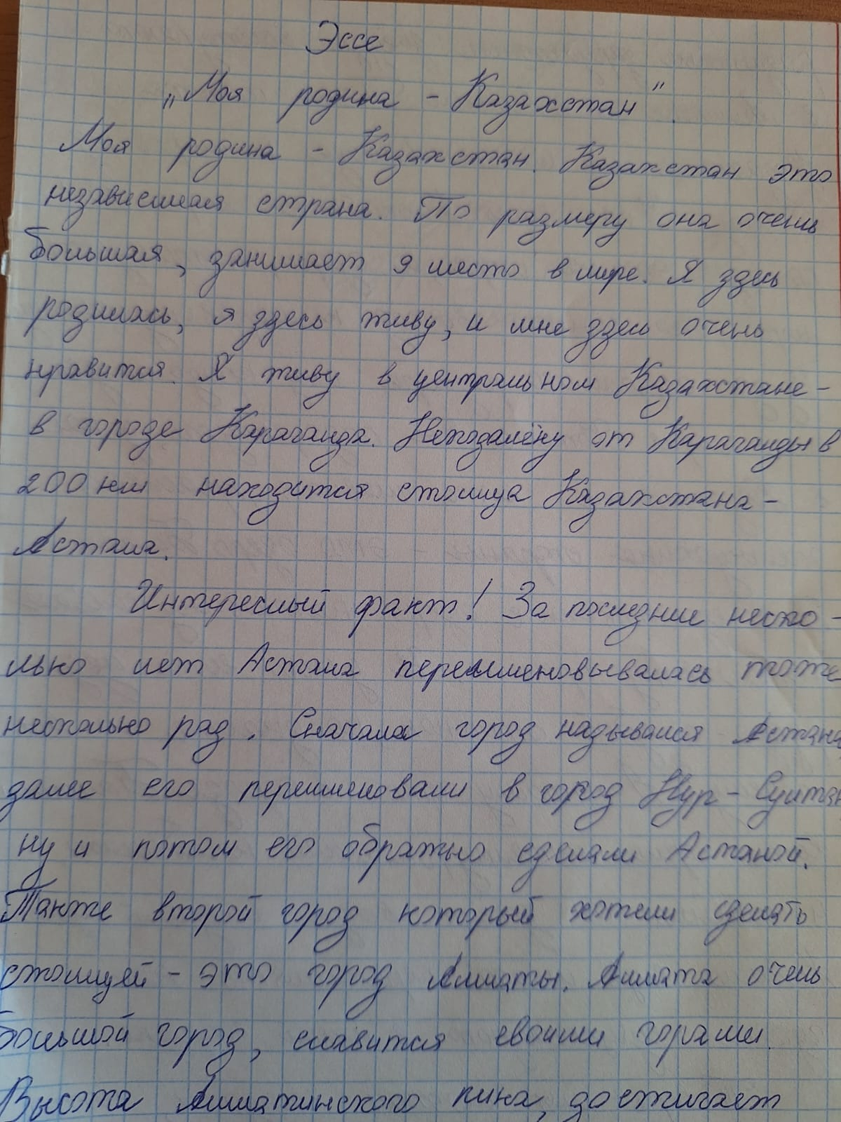 В КГУ ВШ № 100 проведен конкурс по написанию ЭССЕ «Моя Родина-Казахстан» среди учащихся 9-11 классов.