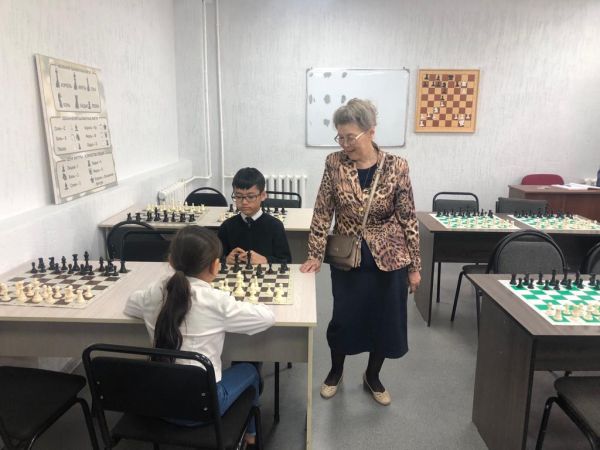 Мектебіміздің қамқоршылық кеңес мүшелері - Камалиева Зинат Камалиевна, Амирова Бибісара Аубакировна, Мукашева Жанар Аманжоловна, Карбузова Талшын Сериковна мектептің "Шахмат" кабинет…