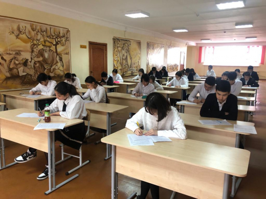 Бүгін 9-сынып білім алушылары үшін қазақ тілі пәнінен емтихан эссе түрінде алынды. Алдымен оқушыларға саптық жиында гимн айтылып, емтихан талаптары түсіндірілді.