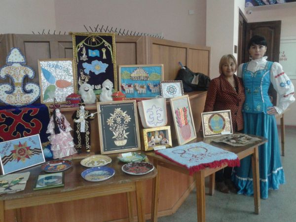 19.09.2015 жылы Облыстық мәдениет үйінде өткен тілдер мерекесінде оқушылардың қолөнер бұйымдарынан қойылған көрме. Жетекшісі : Мутатын К.