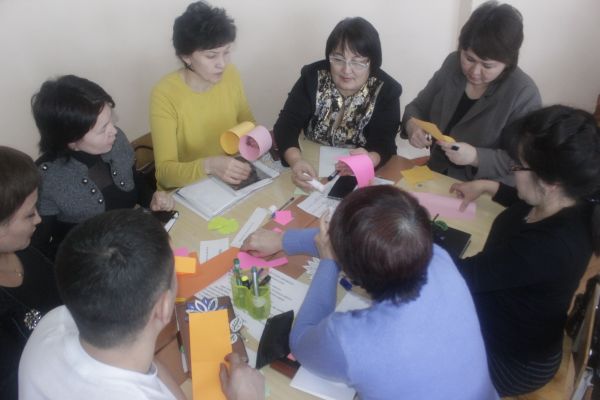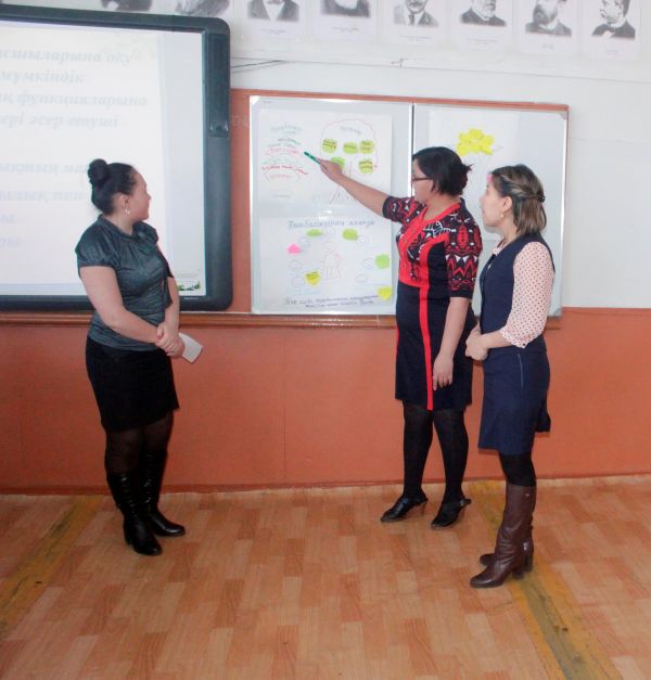 Мектеп директоры С.Д. Изтулеуова, бірінші деңгей мұғалімі М.Ж.Аманбаева және  А.М. Зайткешова 03.02.15ж күні «Оқытуды басқару және көшбасшылық» тақырыбында  коучинг - сессия өт…