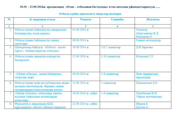 08.09 – 13.09.2014ж. аралығында «Отан – отбасынан басталады» атты апталық ұйымдастырылуда ......