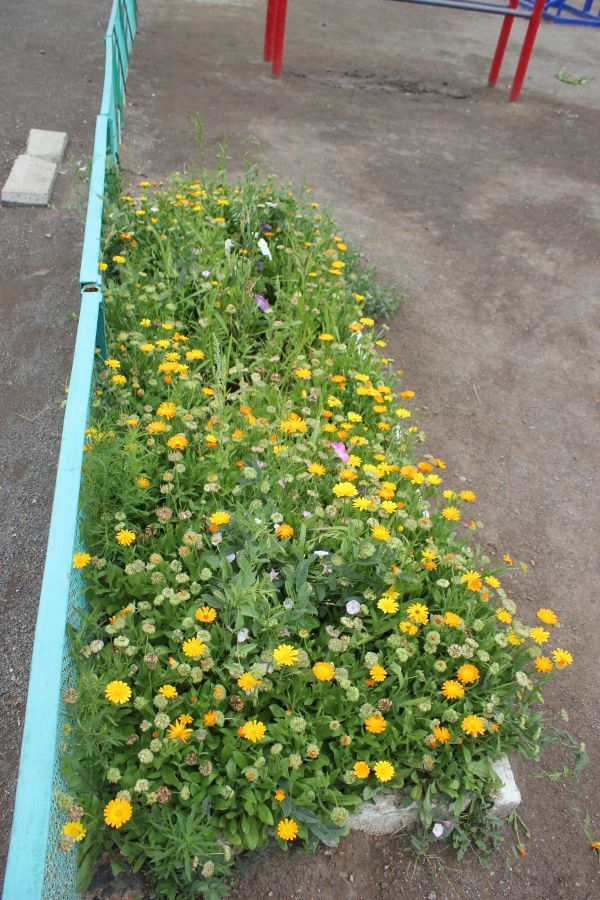 Мектеп ауласындағы отырғызылған гүл шоғырлары