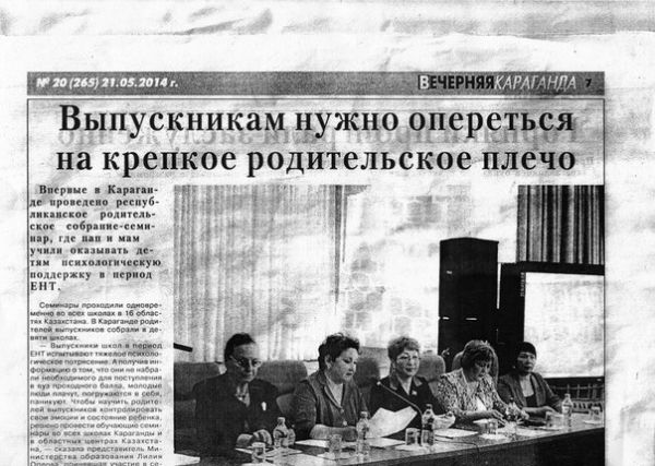 «Жасөспірімдерді ҰБТ тапсыруға дайындау кезінде ата- аналарға психологиялық көмек көрсету» тақырыбында Қарағандыда өткен Республикалық семинарға белсенділік танытқаны үшін марапатт…
