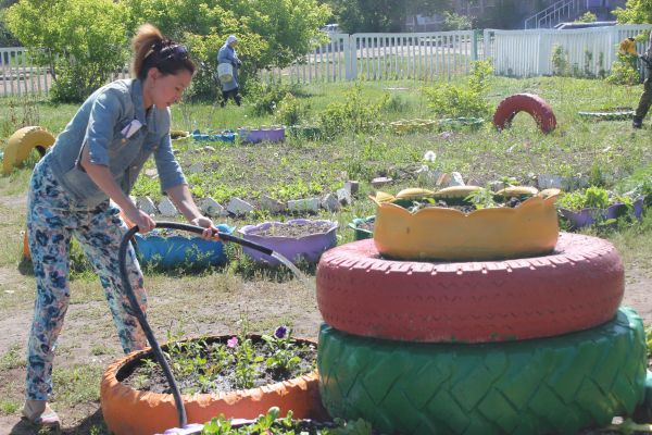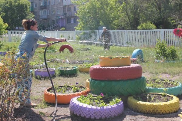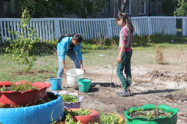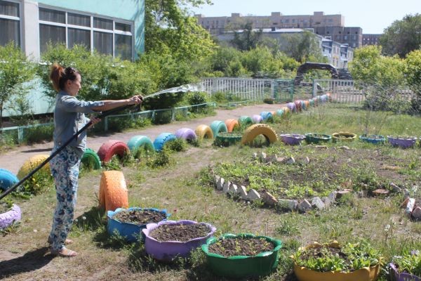 Мектеп ауласына көгалдандыру жұмыстары жүргізілді.