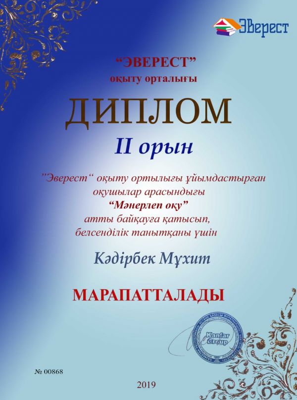 «Эверест» оқыту орталығы ұйымдастырған оқушылар арасындағы «Мәнерлеп оқу», «Ұлт мақтанышы - Қонаев» атты байқауы.