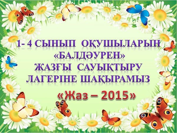 1- 4 сынып оқушыларын «Балдәурен» жазғы сауықтыру лагеріне шақырамыз