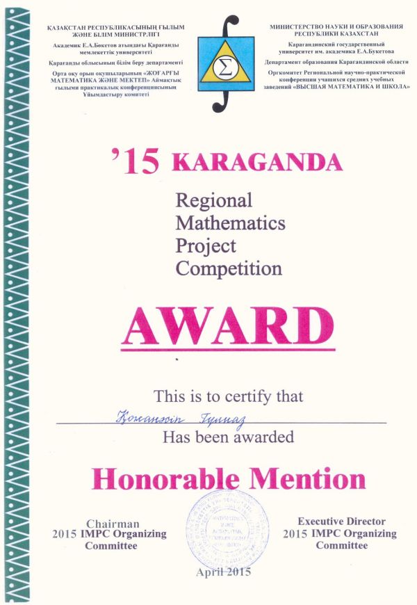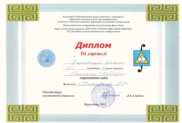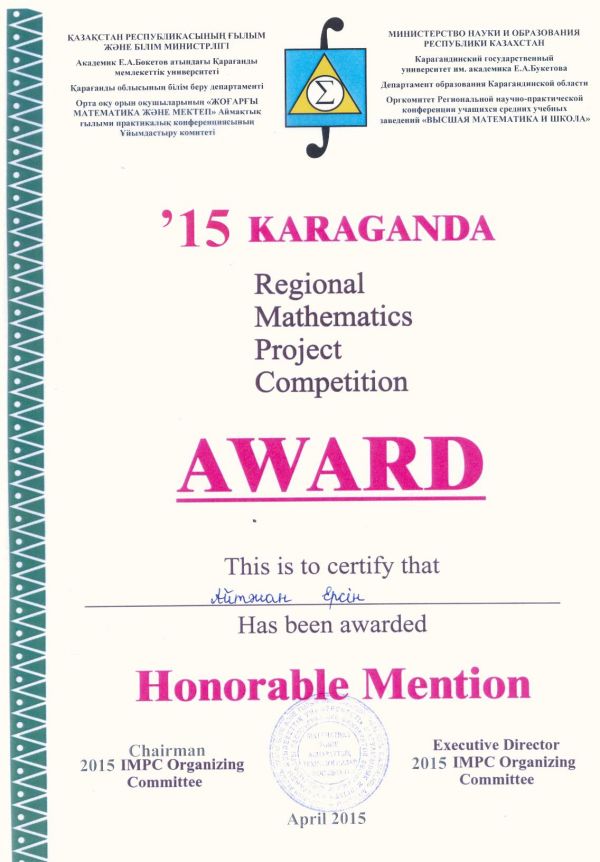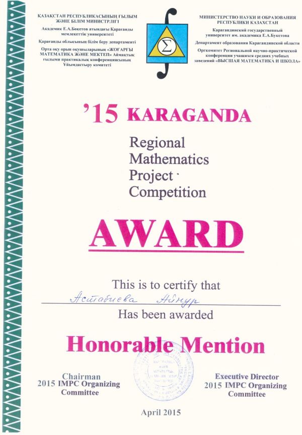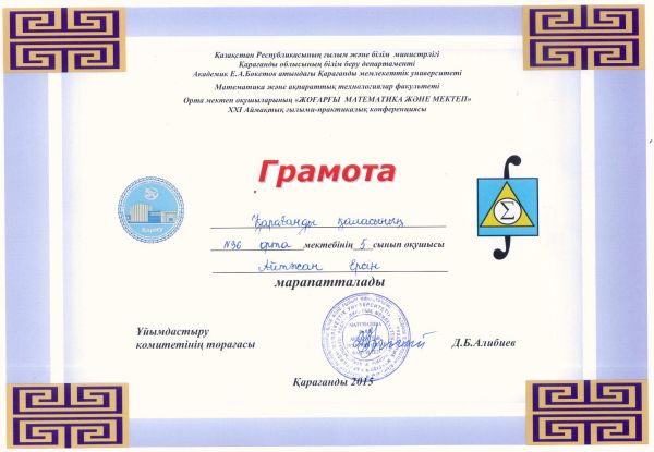 Е.А.Бөкетов атындағы ҚарМУ –де өткен орта мектеп оқушыларының «Жоғарғы математика және мектеп» ХХІ  Аймақтық ғылыми-практикалық конференцияға 9 оқушы  қатысып, ө…